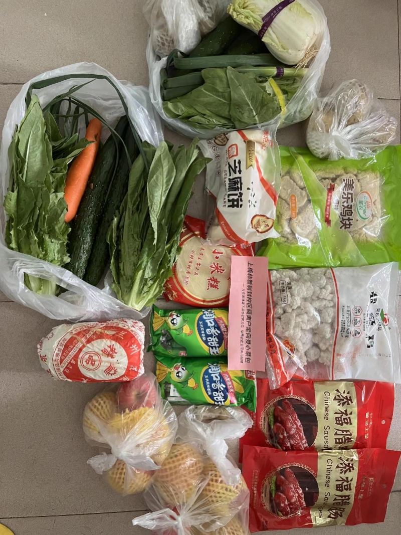 据悉,这些“包裹”,是送给上梅林新村封控区隔离户的定向爱心菜包,由爱心企业深农集团旗下深农厨房公司和福田农批公司共同捐赠的。爱心菜包里,荤素搭配、蔬果均有,还有零食小点心,种类多样、分量充足。