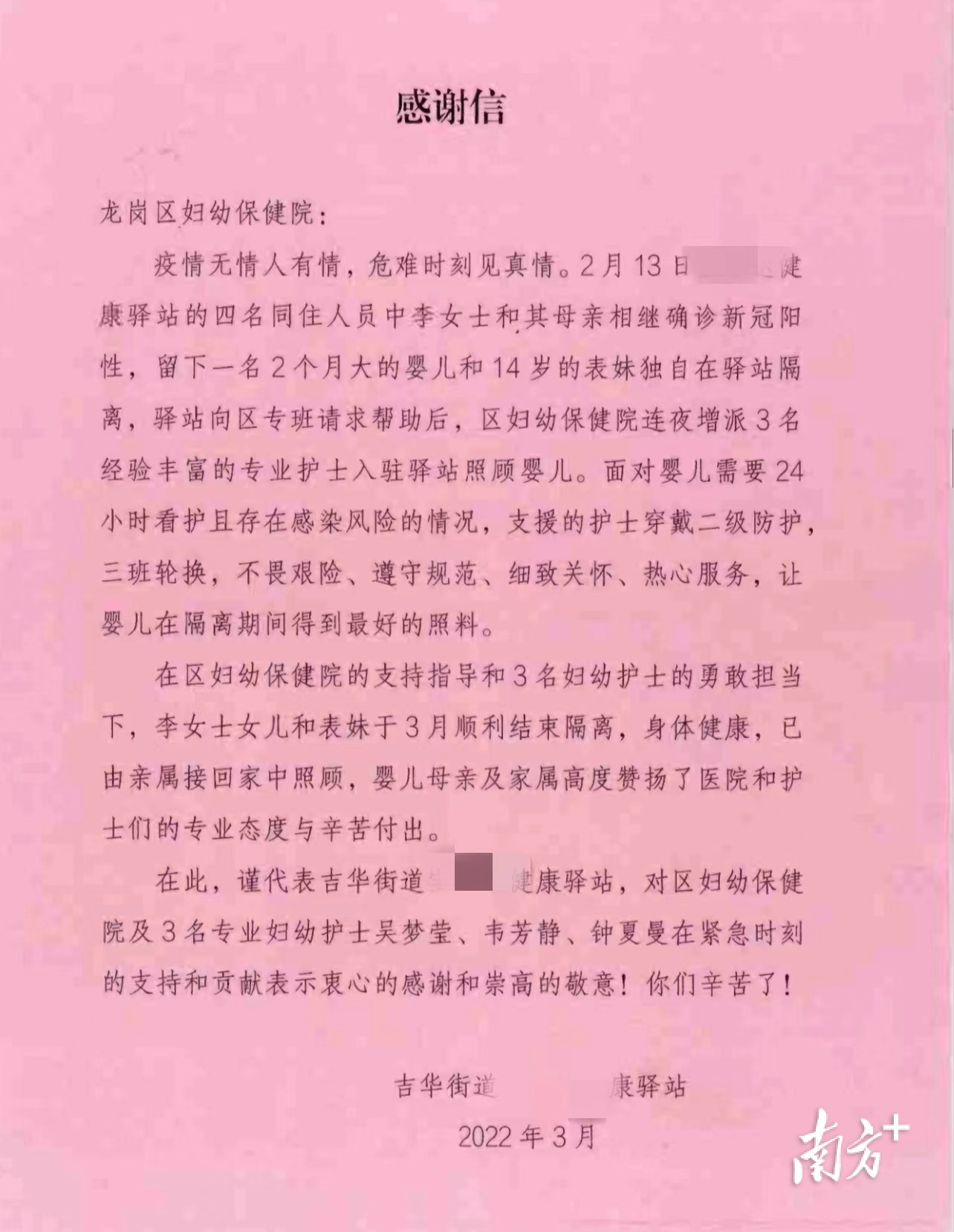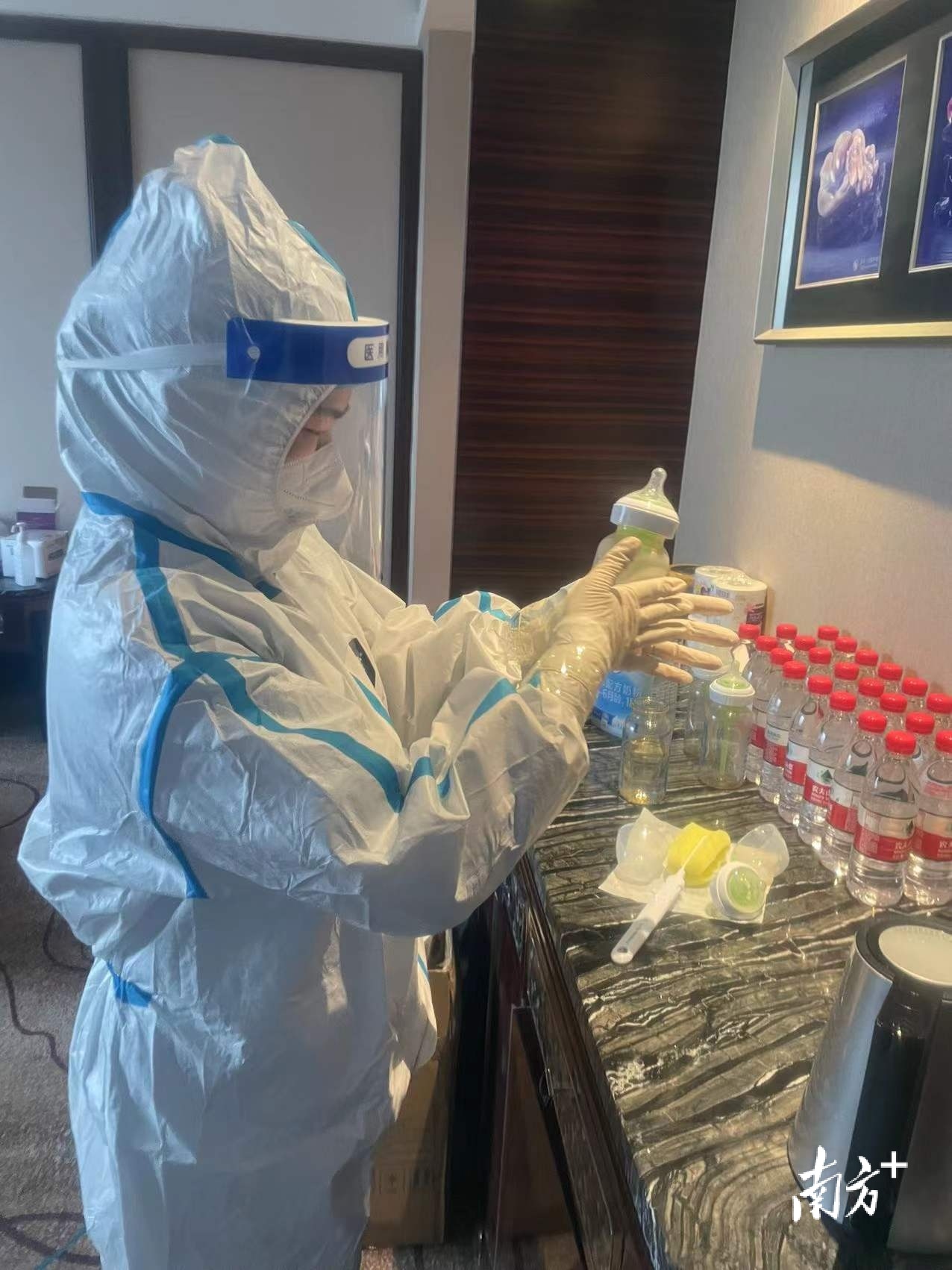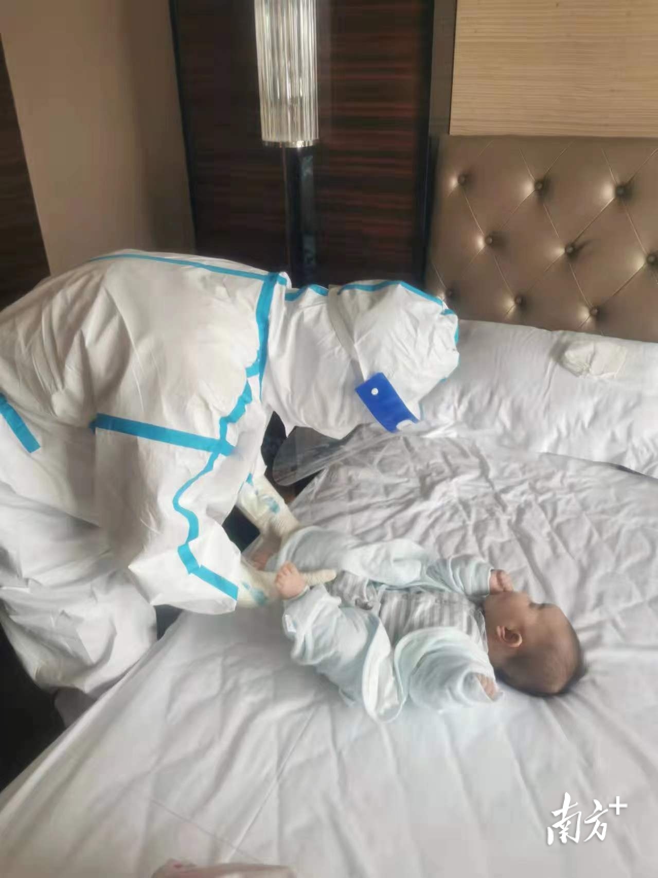 同一时间,深圳市龙岗区妇幼保健院接到照顾“宝墩墩”的紧急任务。“我们来!”护士吴梦莹说;韦芳静说,“疫情当前,我希望能尽一份绵薄之力”;钟夏曼说,“我希望能给她们一家人带来战胜疾病的信心。”