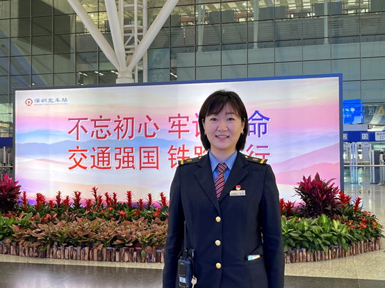 已连续6年大年三十在深圳北站度过的她,面对疫情,始终保持一颗平常心,她说:“深圳北站现场秩序的安全、平稳、有序是北站客运人员的责任,我们会努力保障广大旅客安全出行、顺利出行!”