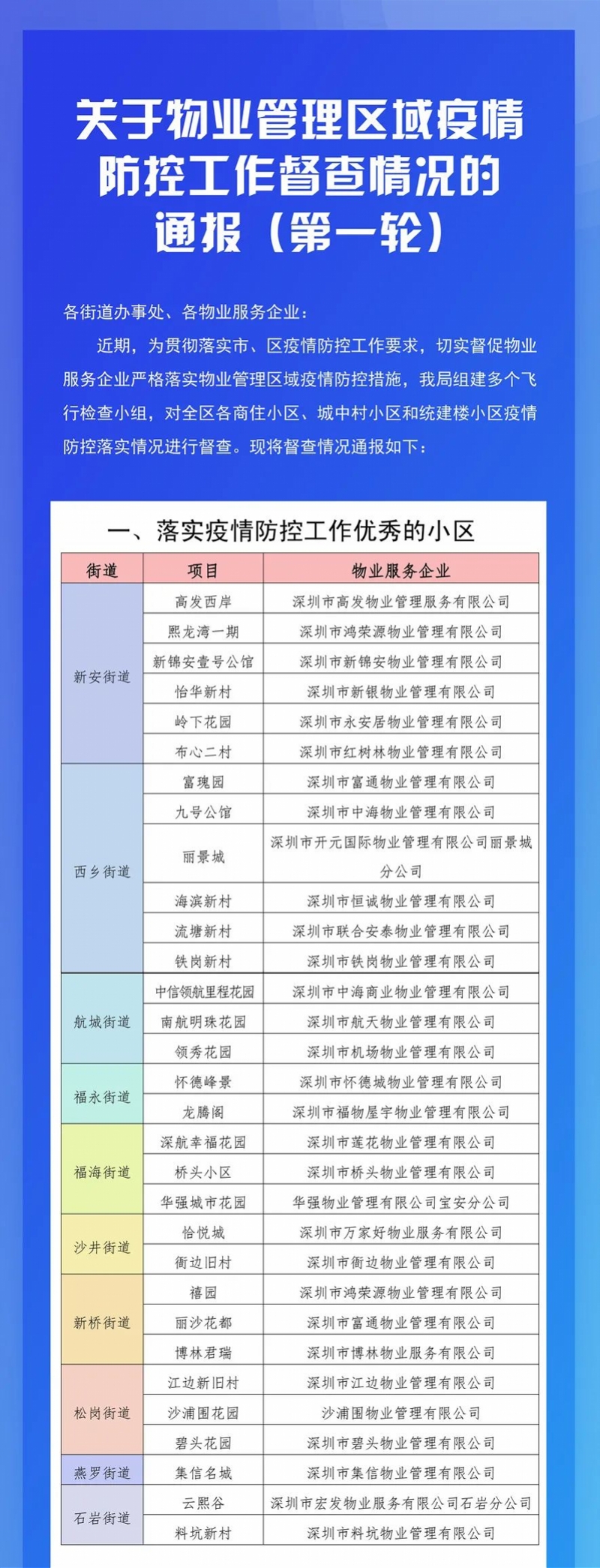 通报物业管理区域疫情防控工作督查情况