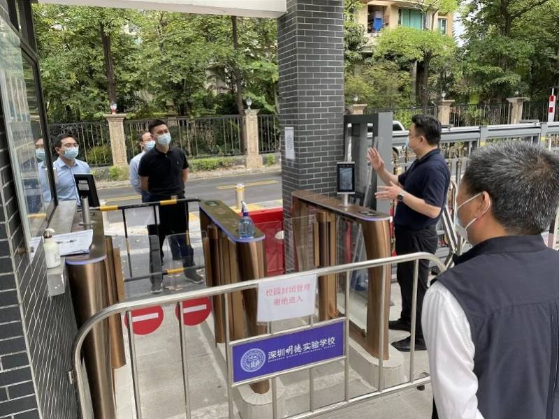 3月18日上午,深圳市教育局局长陈秋明一行来到深圳明德实验学校(集团)香蜜校区检查指导校园全封闭管理工作,恰逢深圳明德实验学校(集团)正开展全封闭管理校园应急演练。
