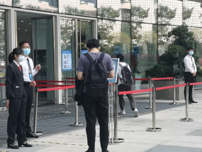 百度国际大厦:逐一验码测温进入