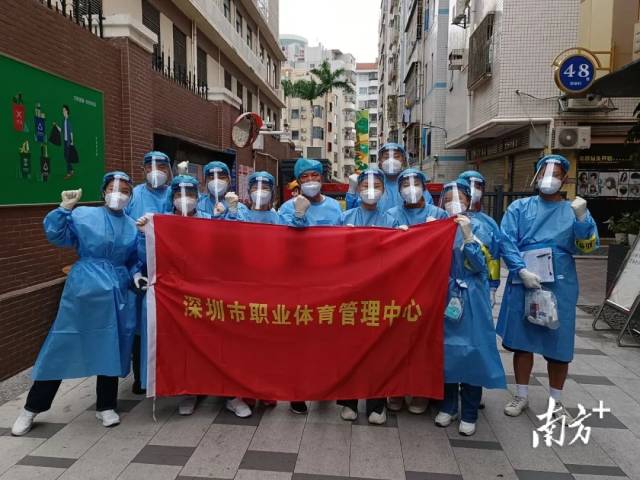 抗疫行动期间,深圳市职业体育管理中心的支援组队员参与了滨江新村、滨河新村两大住宅小区共53栋,向东围村、富豪大厦、国企大厦等约2000多户的居民信息排查登记工作;参与了滨江社区全民核酸上楼劝导、关爱慰问工作,实现每日核酸检测社会面动态清零;参与了社区各核酸检测点核酸采样、卡口值守、扫码等协助辅助工作。