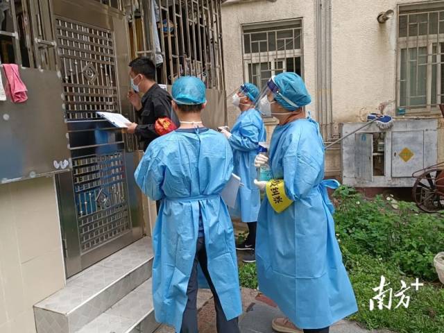 扫楼摸清底数,提醒市民及时参加核酸检测是队员们的主要工作。在有电梯的33楼高层,队员们从顶扫到底最快需要4个小时,期间不敢喝一口水吃一口食物,扫完一栋楼双腿像灌铅般沉重。