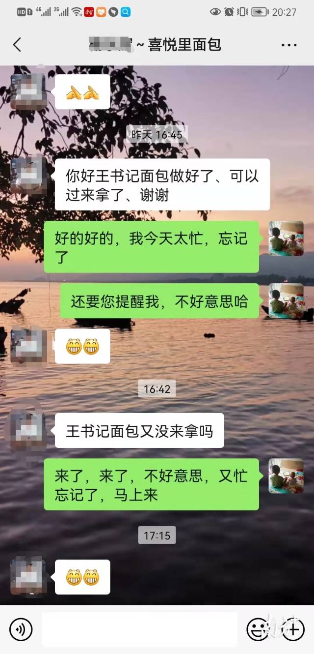 于是,从这一天开始,每个下午,工作人员都会收到杨先生通知取面包的微信或电话。防疫工作忙起来,忘了取面包,杨先生还会再发来提醒短信,从不间断。