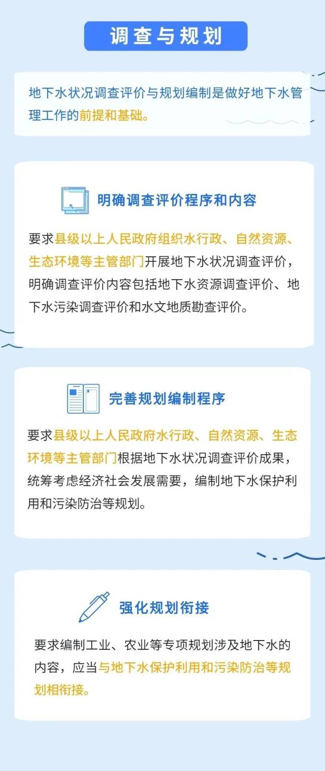 对地下水调查评价、规划、节约保护