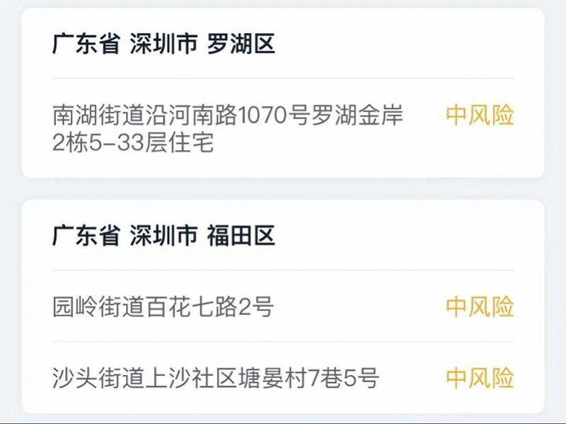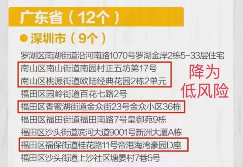 据深圳卫健委3月25日消息,深圳4地降为低风险地区,详细地区如下: