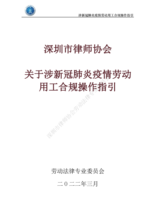 受新冠疫情影响,部分行业企业面临较大的生产经营压力,劳动者面临待岗、失业、收入减少等风险,劳动关系不稳定性增加,劳动关系矛盾逐步凸显。3月29日,深圳律协召开线上新闻发布会,发布《涉新型冠状病毒肺炎疫情劳动用工合规操作指引》(以下简称“操作指引”)。