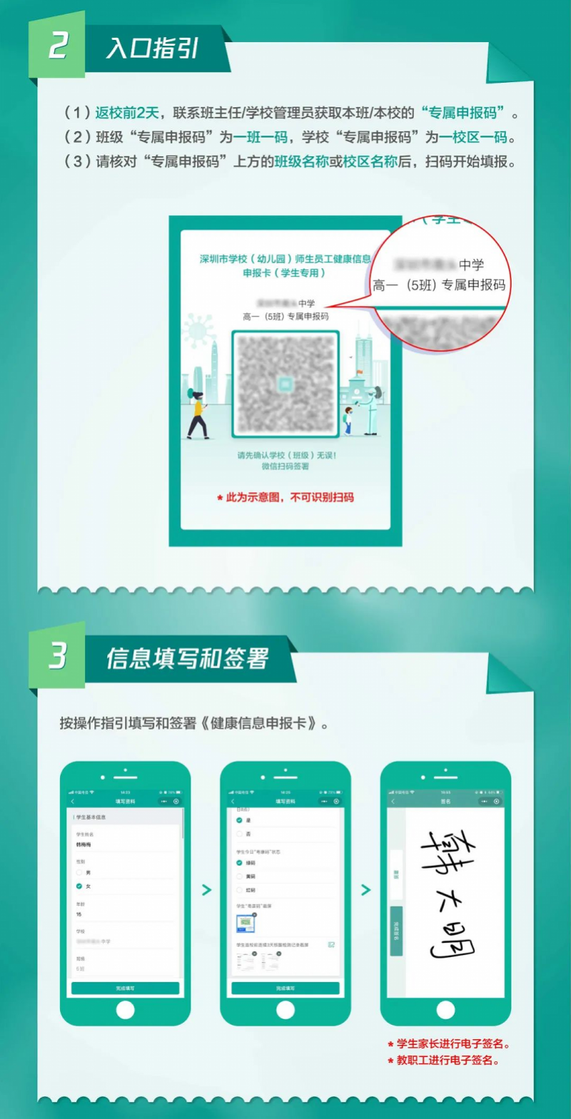 今天(4月6日)中午,“深圳教育”发布全市师生返校健康申报指引。根据指引,各区、各校的返校时间不同,师生员工只需在返校前2天联系学校(班主任)获取本校(本班级)“专属申报码”(学生一班一码,教职员工一校区一码),根据下方操作指引线上完成健康申报。