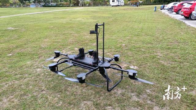 笔者来到大运中心的这片草地附近,只见一男子正站在一台飞行器上,在草地上几米高的空中来回转圈测试。这台飞行器有六个螺旋桨,螺旋桨转速很高,运行时发出巨大轰鸣声,风吹得人睁不开眼睛。该男子姓廖,落地后,笔者上前攀谈了解到,该飞行器是他们公司自主研发的,目前,他们取名为飞行滑板。“这个属于空中冲浪了。在体育竞技,空中表演,应急救援,特种行业,都可以应用的上。”廖先生介绍,他们公司名为瀚悦(深圳)人工智能科技有限公司。