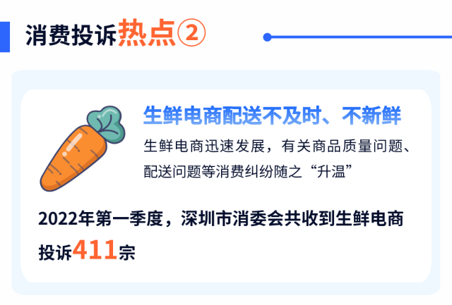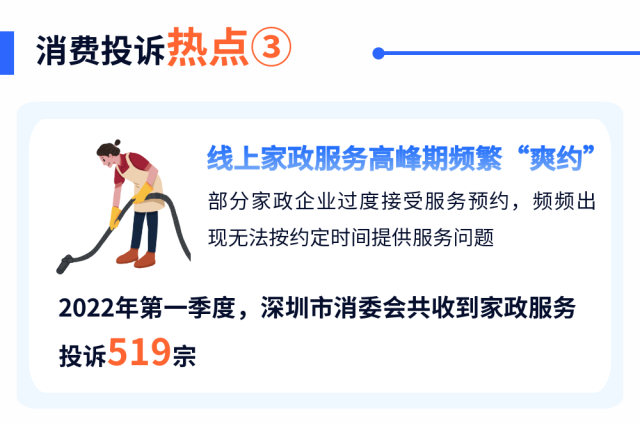 4月14日,深圳市消费者委员会公布2022年第一季度消费投诉情况。数据显示, 深圳消委会该季度接受消费投诉3.9万宗,同比增长8.46%。其中,疫情下消费退改难、生鲜配送不及时、线上家政服务频繁“爽约”等问题较为突出。