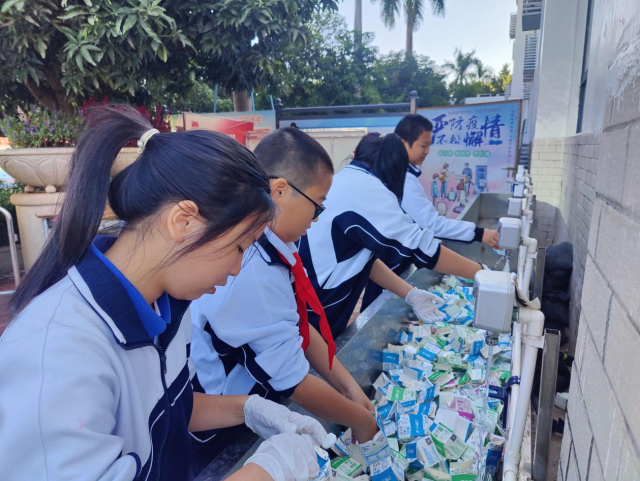 近期,深圳全市中小学(幼儿园)陆续开学,借此机会,依托校园开展的深圳市牛奶盒资源回收校园实践活动(试点)项目(下称“校园牛奶盒资源回收行动”)梳理总结成绩,展望新年计划,力求更进一步以牛奶盒为抓手,创新创建劳动教育和文明校园活动,扎实推进学校垃圾分类工作。