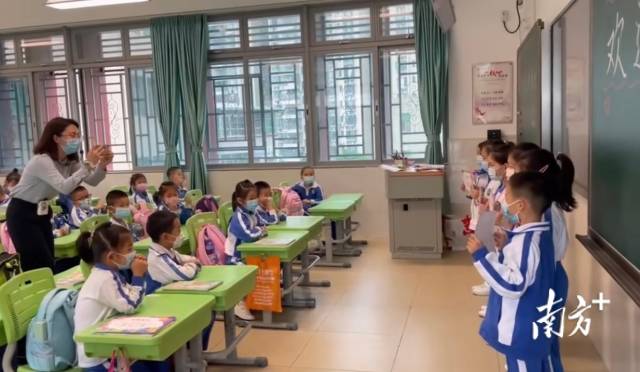 喊出名字鼓起掌、目光迅速聚集、竖起大拇指……4月18日,这个“动作三连”在深圳市光明区百花实验学校一年级(6)班接续不停。
