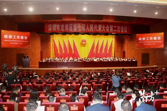 4月19日上午,深圳市龙岗区七届人大二次会议开幕。龙岗区区长王策飞作政府工作报告。