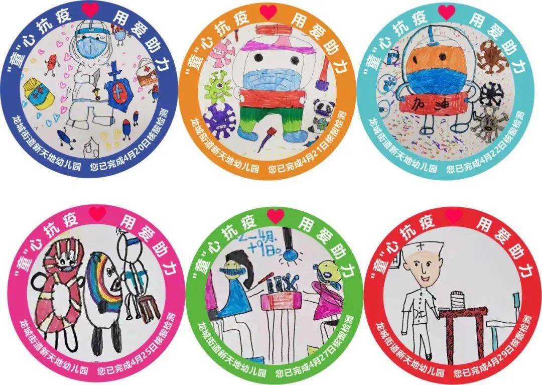 福外高中附属幼儿园学校为萌娃们准备的核酸贴贴上,印有学校的吉祥物幼幼、珊珊,寓意“幼有善育”;龙城街道新天地幼儿园,老师们为宝贝定制的核酸贴贴,印着孩子们可爱的“画作”;坂田街道荣汇幼儿园,老师们也为孩子定制了每天不重样的专属核酸贴贴……对于孩子们来说,核酸就像集邮,充满了趣味性。