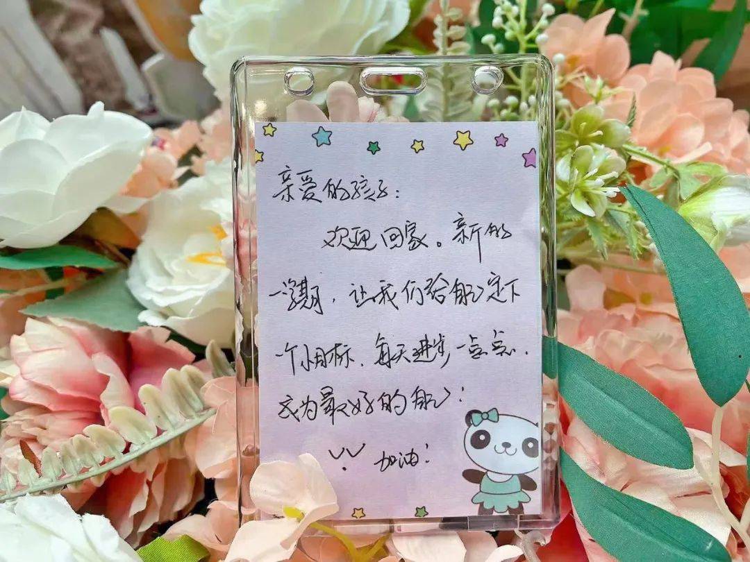无独有偶,龙华区第二实验学校附属鸿尚幼儿园内,教师们同样早早为孩子们准备好了核酸码卡片,还在背面写上了能量满满的祝福语。