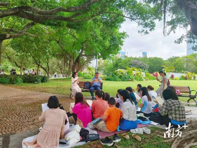 4月23日,第27个“世界读书日”。在深圳市洪湖公园的草坪,洪湖小学举办了“4·23共读半小时”暨“阅读种子家长”读书活动。