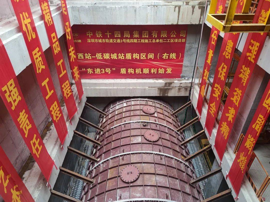 近日,在地铁3号线四期低碳城站施工现场,随着直径6.45米的盾构刀盘缓缓转动,“东进3号”盾构机顺利始发,标志着深圳地铁3号线四期工程,进入隧道区间盾构施工的提速阶段。