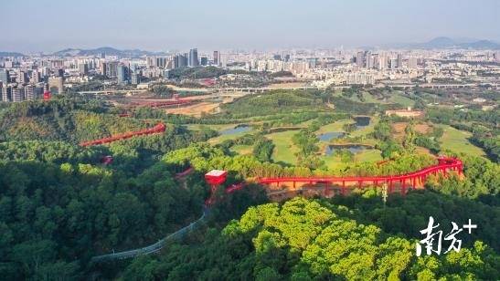 一条醒目的虹桥,宛如灵动飘逸的红飘带,横卧在青山绿水之间,诞生之后很快成为深圳乃至大湾区生态地标顶流。