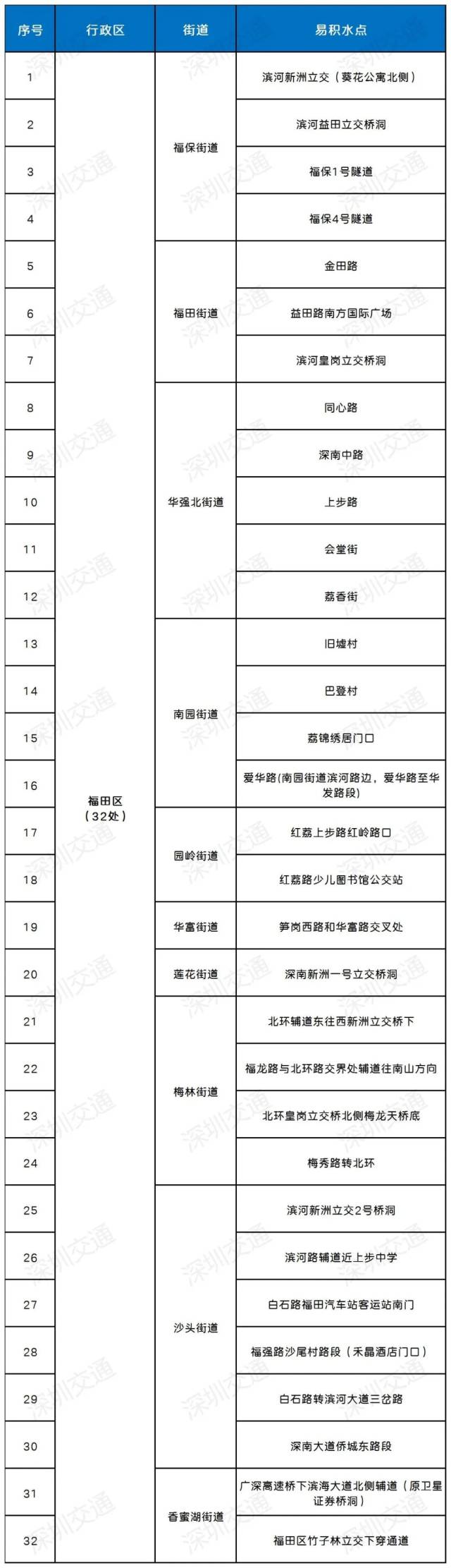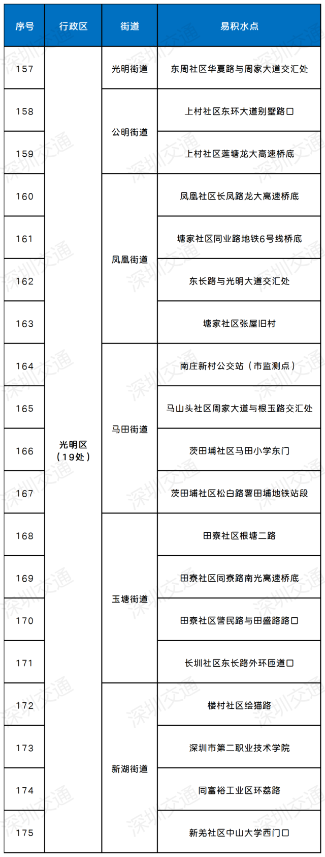 根据深圳市气象灾害风险提示,全市范围内降雨天气易积水点新增至 182 处。