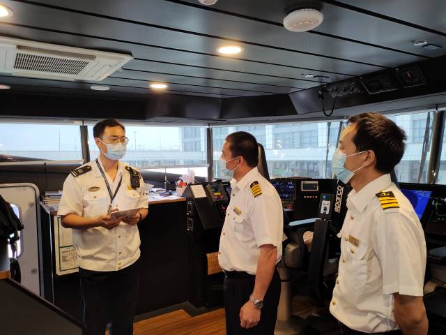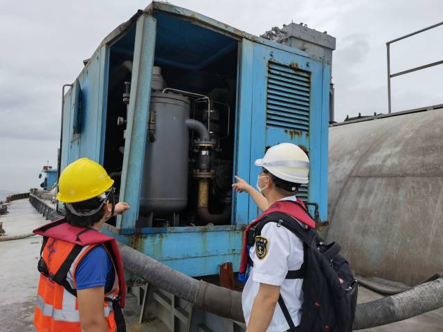 海事执法人员现场督促船舶落实恶劣天气防御措施