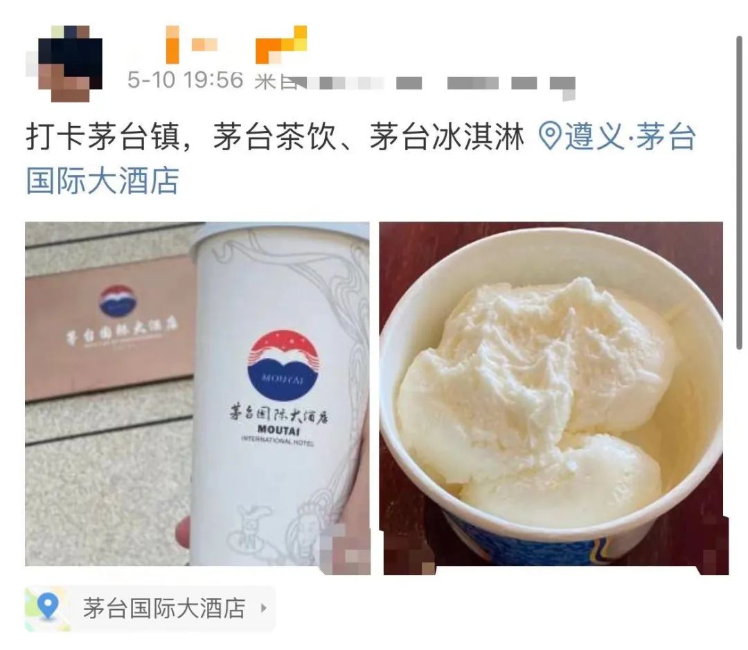 5月10日,一位网友在网上晒出打卡茅台冰淇淋的照片,该网友说:“味道就像就像是冰淇淋里倒了一杯酒,有点上头,酒味挺重的,建议最好不要开车。”
