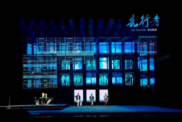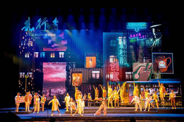 先行者不止于剧中人物,还是你、是我、是大家。要展现这样一个反映时代脉搏的大题材,在舞台表现方面就有诸多考量。《先行者》不同于传统歌剧以实景为主的舞台布景,调动多元艺术表现手段,广泛运用现代多媒体科技,打造具“先行示范区”气质的舞台艺术观感。舞台上大量高科技的运用,其显示和切换效果酷炫又迷人,让观众感受到观看科幻大片的既视感,结合贯穿全剧的情感线、思想线和生活线,在炫酷和朝气中透出人间的温暖与爱。