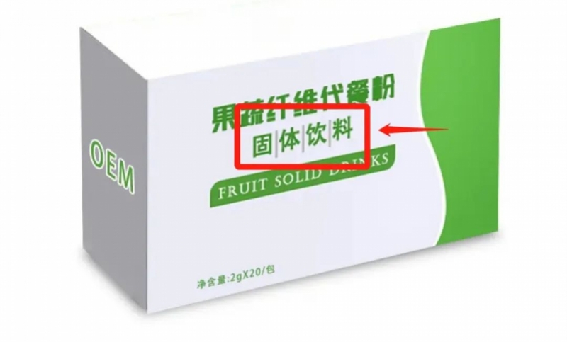 固体饮料产品名称不得与已经批准发布的特殊食品名称相同;应当在产品标签上醒目标示反映食品真实属性的专用名称“固体饮料”,字号不得小于同一展示版面其他文字(包括商标、图案等所含文字)。