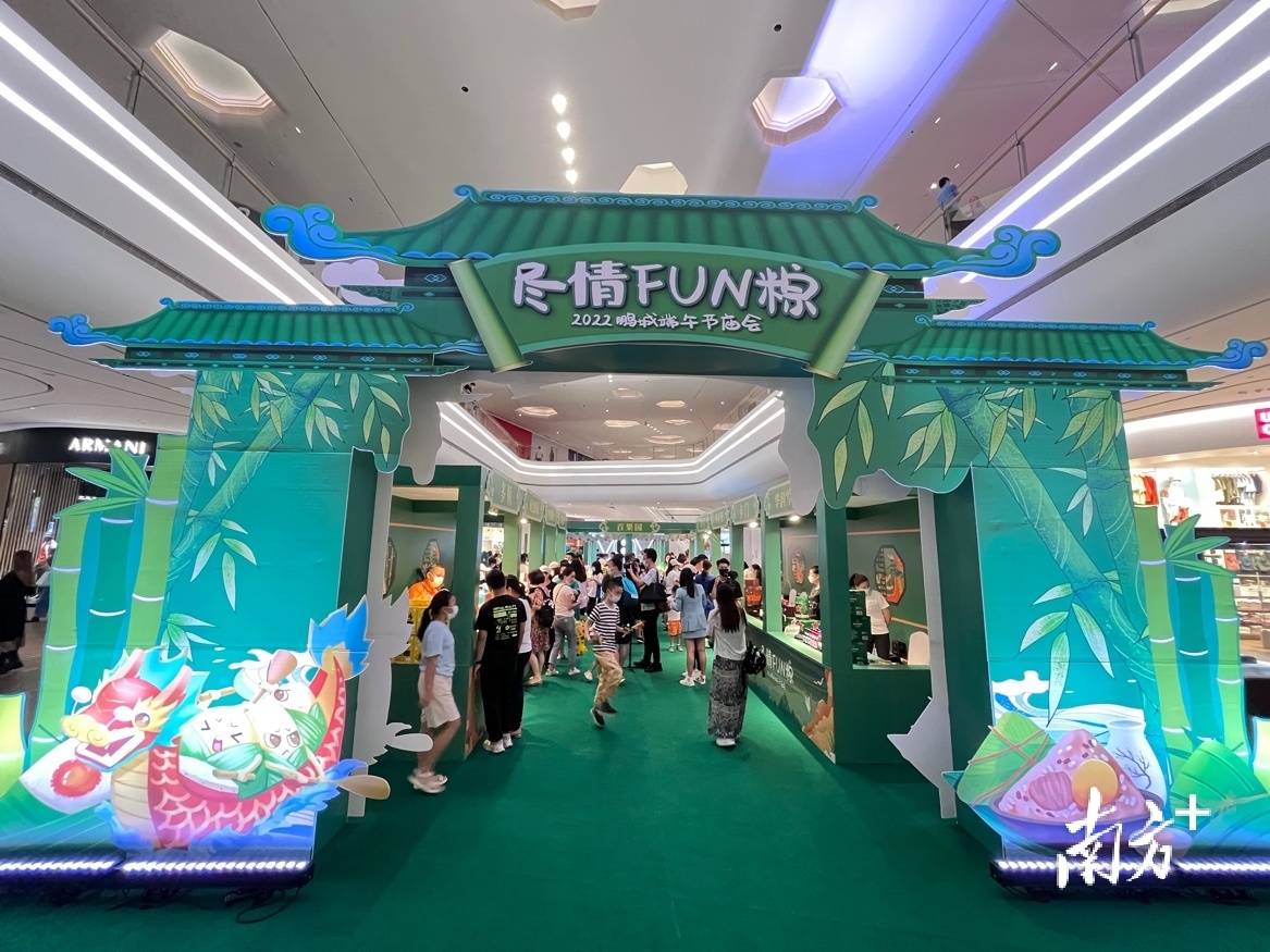 活动现场随处可见端午元素,绿粽子、咸鸭蛋、红荔枝,国风美景与新潮集市吸引了不少年轻人驻足拍照打卡,极具鹏城特色的老字号、新消费品牌齐聚一堂,漫步其中,市民仿佛在感受一场沉浸式的端午文化体验之旅。