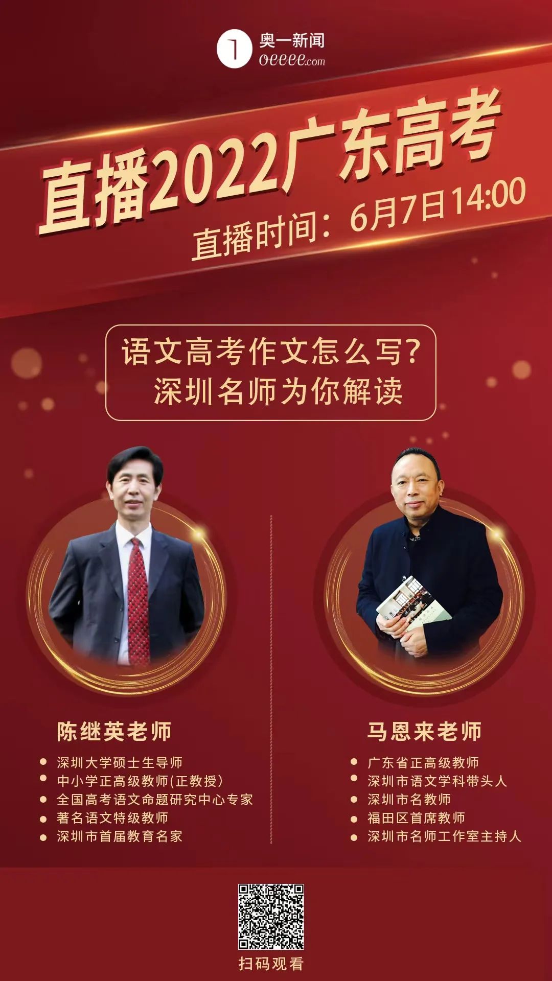 陈继英老师、马恩来老师为深圳考生点赞