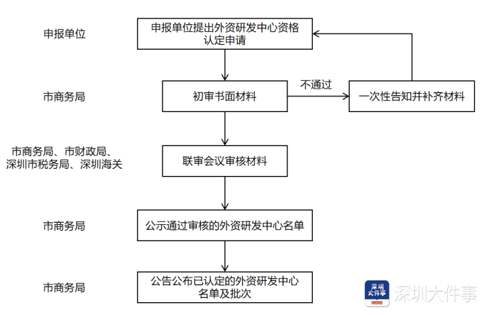 外资研发中心的申报审核流程是怎样的?记者了解到,外资研发中心享受采购进口设备免税资格认定由深圳市商务局、深圳市财政局、深圳市税务局、深圳海关负责。具体免税工作由深圳市税务局、深圳海关负责。