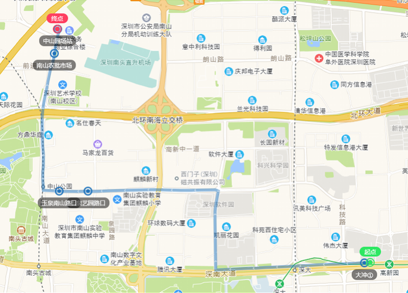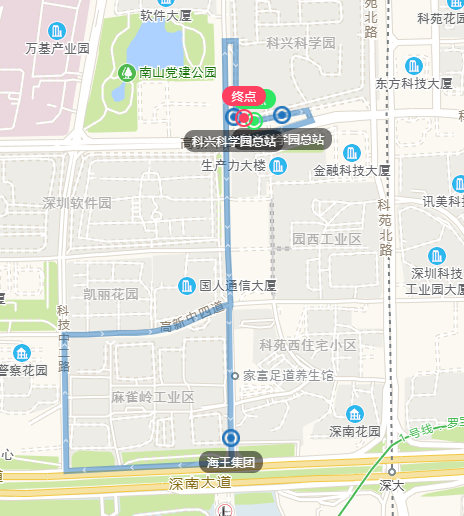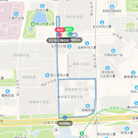 停靠站点为:科兴科学园总站-海王集团-科兴科学园总站