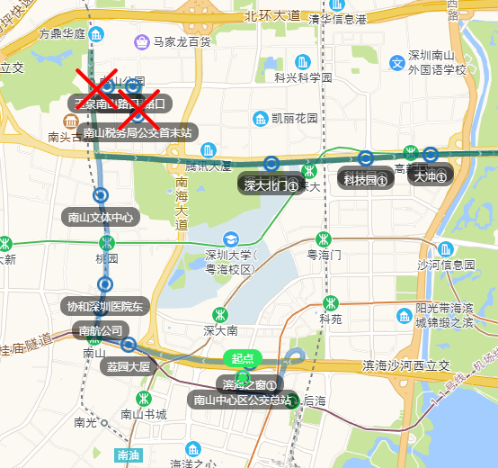 往大铲湾公交总站方向增加“科技南路、高新南地铁站”等2个单边公交停靠站。