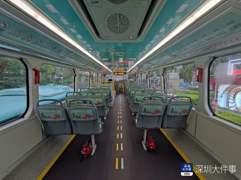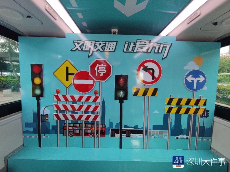 启动仪式上,巴士集团最新推出的交通安全大篷车正式亮相。大篷车外观以深圳城市地标为背景,展示了出租车、公交车、小黄鱼、红胖子等具有代表性的公共交通服务项目,以及慢行标识牌、红绿灯等丰富的交通元素。车身同时标注了“文明交通,让爱先行”的温馨宣传语。车厢内部,则设置印章集赞区、学习互动区、拍照打卡区、模拟驾驶区、游戏闯关区等区域。