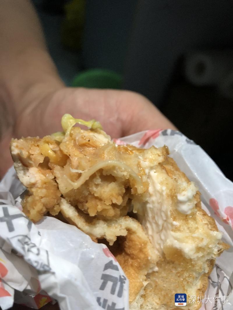 孕妇称,所吃汉堡时发现疑似“蛔虫”。