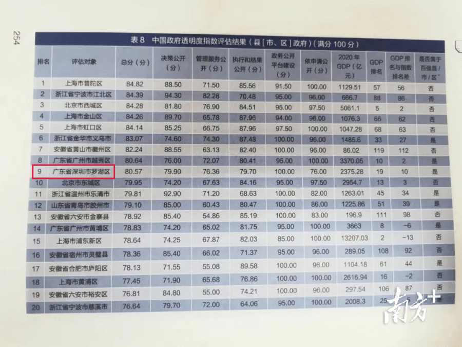 近日,中国社科院法学研究所、社会科学文献出版社联合主办的“2022年《法治蓝皮书》发布暨中国法治发展研讨会”在北京举行,会上发布了《中国政府透明度指数报告(2021)》,罗湖区在“中国政府透明度指数评估(县[市、区]政府)”中位居第九。罗湖区已连续三年在该项评估中位列全国前十。