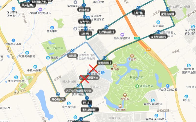 双方向取消“坪山外国语学校”1对公交停靠站。