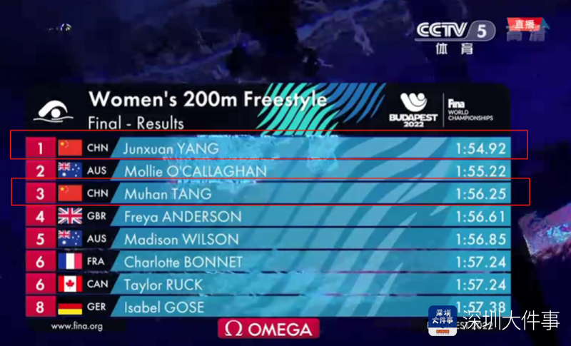 2022年世界游泳锦标赛于6月18日至7月4日在匈牙利布达佩斯举行。6月22日,深圳大学发布喜讯,深大学子杨浚瑄夺中国游泳队世锦赛首金,汤慕涵摘铜!当天,深大向参赛的国家游泳队深大学子发去贺信。