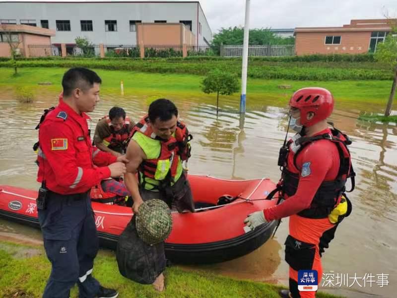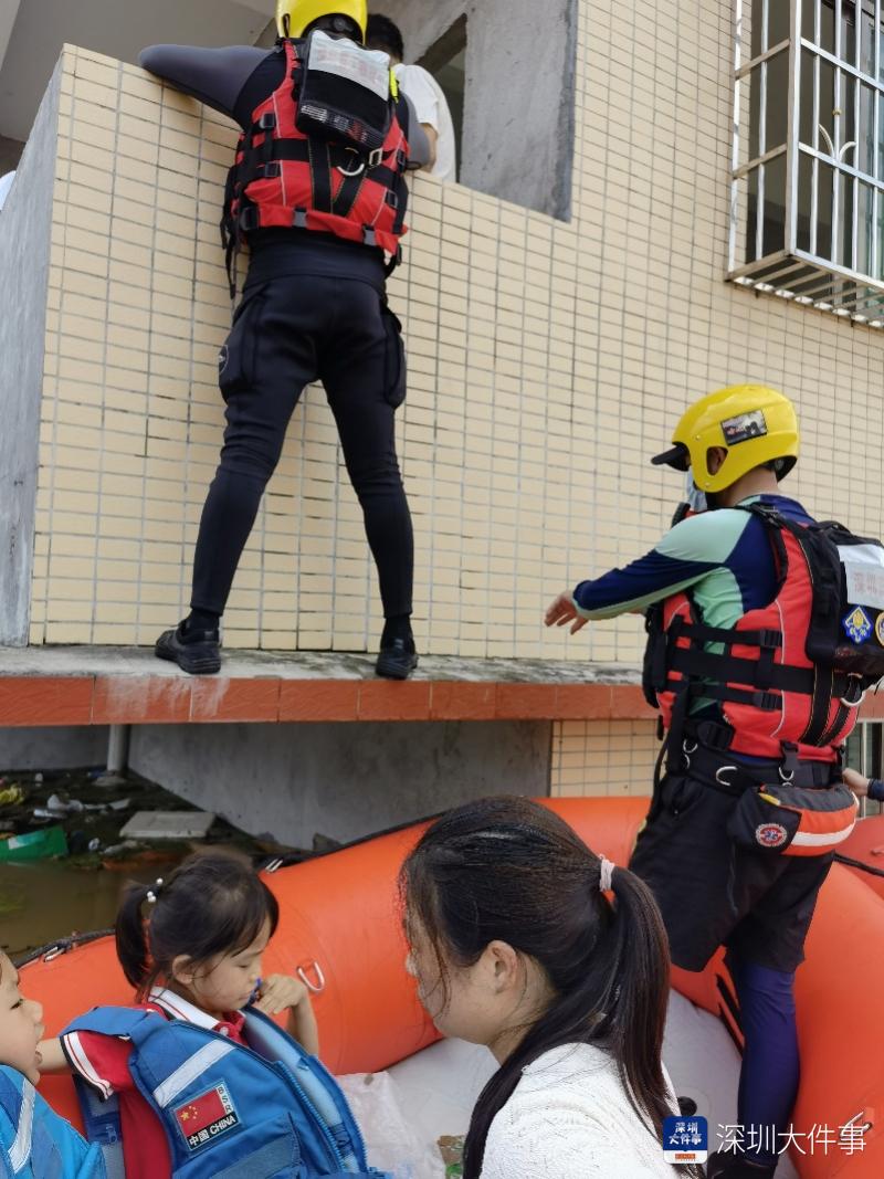 深圳蓝天救援队抗洪抢险小分队驰援受灾一线。
