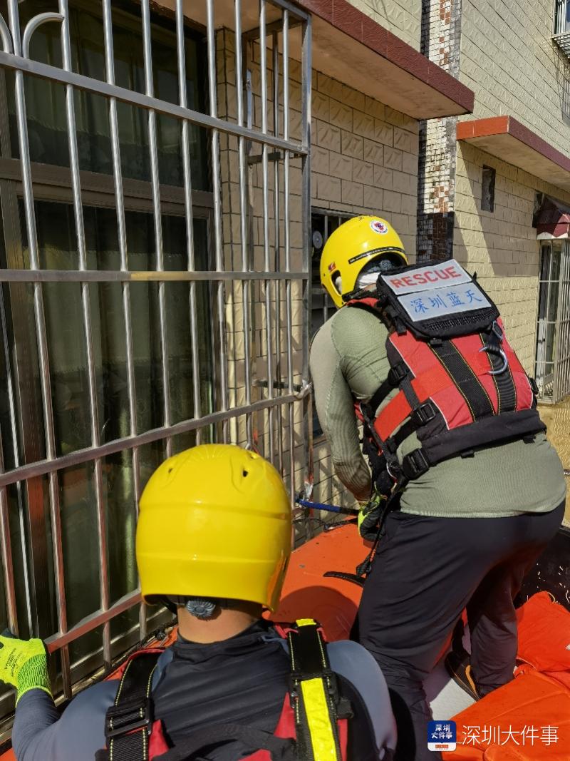 据了解,深圳蓝天救援队在6月22日在英德市望埠镇共出动4车16人3艇,转移人员73人,连续出艇约70次,派送物资4次。“在6月22日下午,我们发现有位76岁的中风老人因行动不便,独自被困在家2楼房间,所住房屋没有逃生窗,我们第一时间用破窗装备将窗户打开,随后将老人背出来,并送往安置点。”深圳蓝天救援队行动部部长王先生告诉南都记者,队员们目前正在清远市飞来峡区域救援,“洪水来得比较猛烈,目前飞来峡区域水位还在上涨,最高的时候水域达到了6米,甚至10米左右。”王先生称,队员们采取轮班制不间断工作,会及时根据实际情况采取相应的应急救援方案。