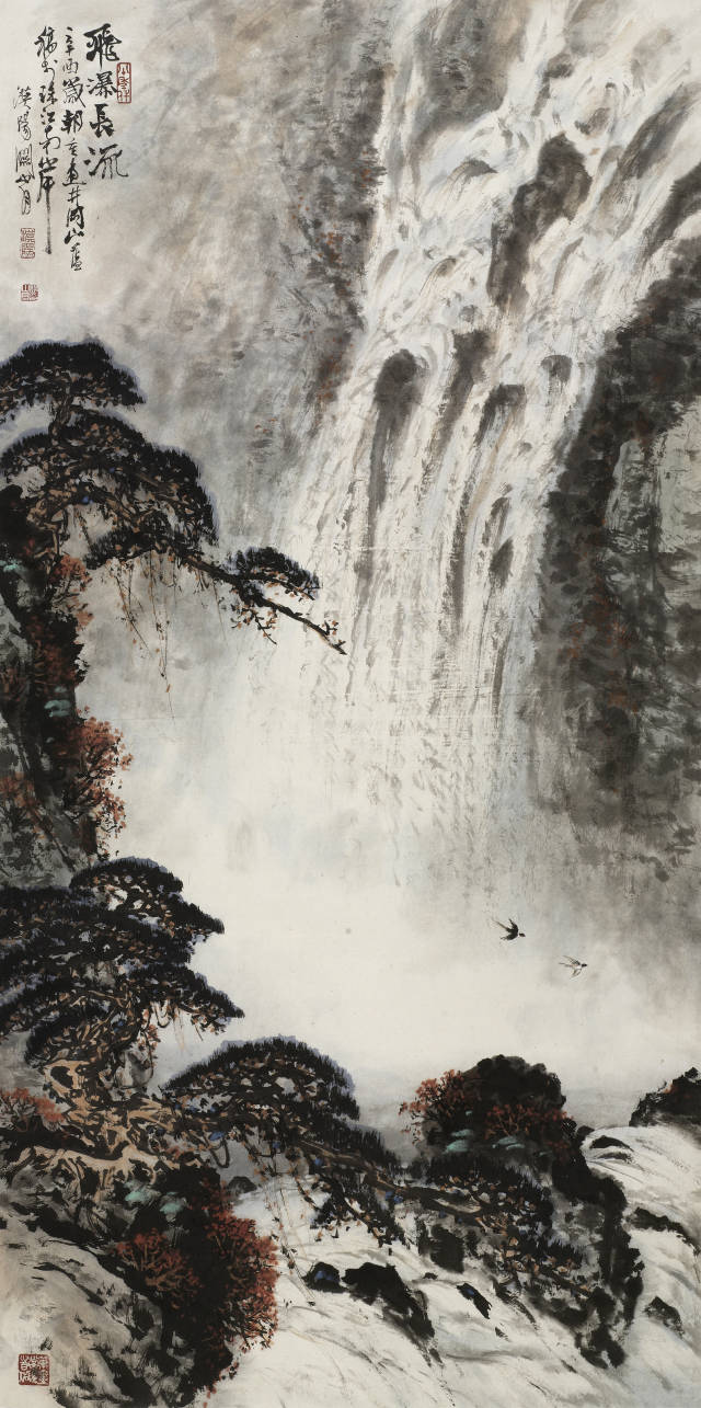 关山月《飞瀑长流》 137.2x68cm 纸本设色 1981年 关山月美术馆藏