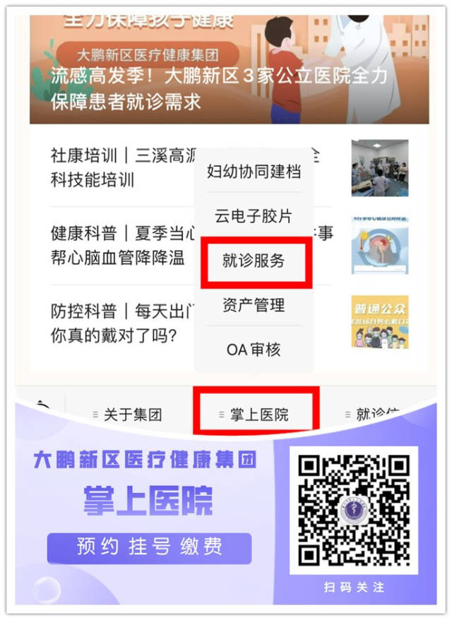 而近期完成上线的“移动智慧医院”项目,内容包括智慧门诊、智慧支付、智慧住院、统一号源池、云胶片等内容,让患者实现“无卡就医”全流程,患者只要关注“大鹏新区医疗健康集团”公众号,通过掌上医院的就诊服务,即可在手机端实现预约挂号、缴费、缴纳住院押金。