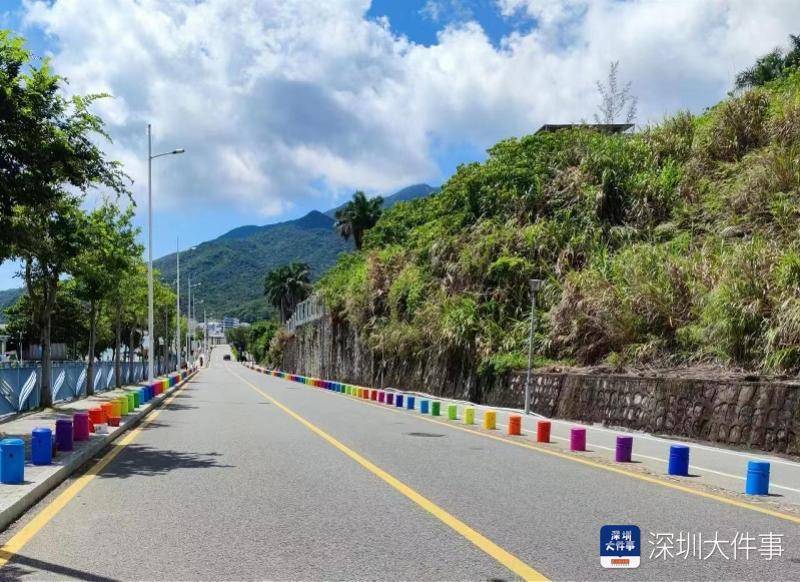 据了解,这条“彩虹路”毗邻长沙头停车场,全长约1公里,共有近700个隔离墩。“在深圳这样快节奏的现代化城市中,处处风光步步景的南澳是一处让人远离城市喧嚣、卸下俗世尘埃的世外桃源。”南澳办事处相关负责人表示,南澳自2020年提出打造世界级滨海生态旅游度假区核心区的目标,对标世界级,既要在大项目上下功夫,也要在细微处用匠心,给每一位游客带来温暖舒适的旅游体验。“彩虹总能让人心情愉悦、忘记烦恼,此次我们将彩虹元素融入道路设施美化提升,丰富景观层次的同时,也为了让游客在缤纷的彩虹陪伴下更好地缓解旅途劳顿和工作生活压力,愉悦心情。”