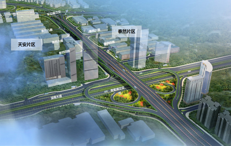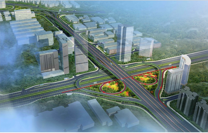 改造车公庙立交并与主桥相连接,实现香蜜湖路-滨河大道及香蜜湖路-福强路“快-快”衔接的同时,完善立交整体的其他转向功能。