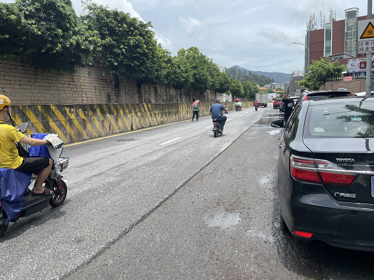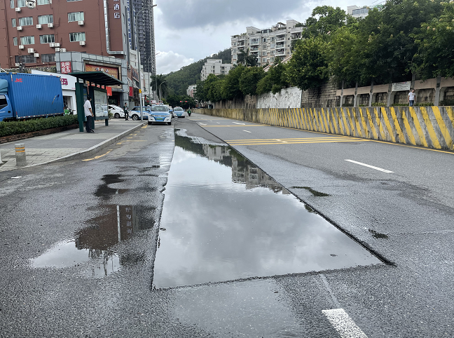 据一位富达花园的居民表示,“之前听说是为了拓宽人行道而进行的施工,但是现在不仅人行道没有拓宽,反而把路面弄成这样。”此外,他还透露,由于目前深圳正值雨季,这一段路面的坑洼处会积不少的水,所以不少的行人会选择铤而走险,走到没有积水的行车道上。
