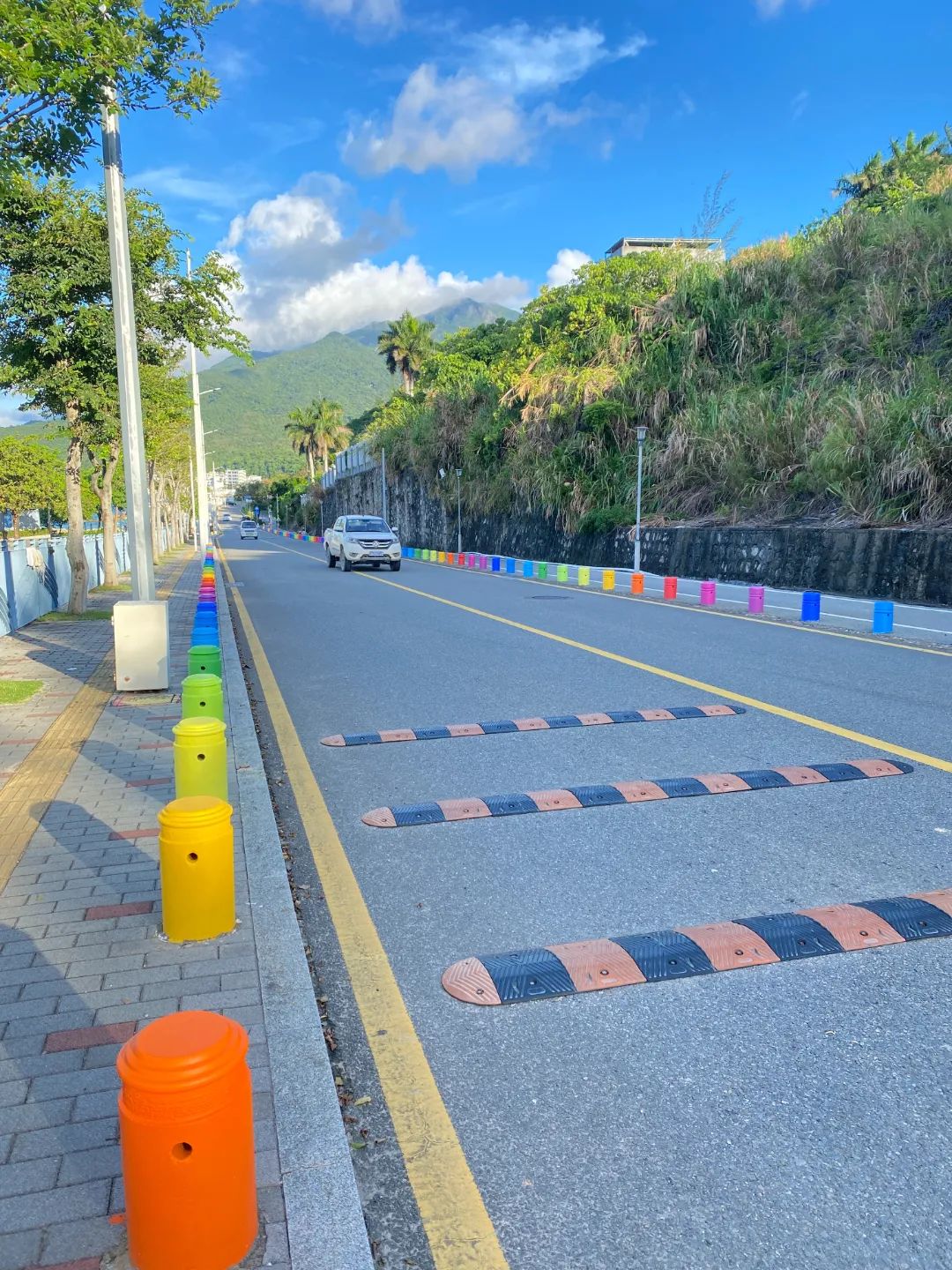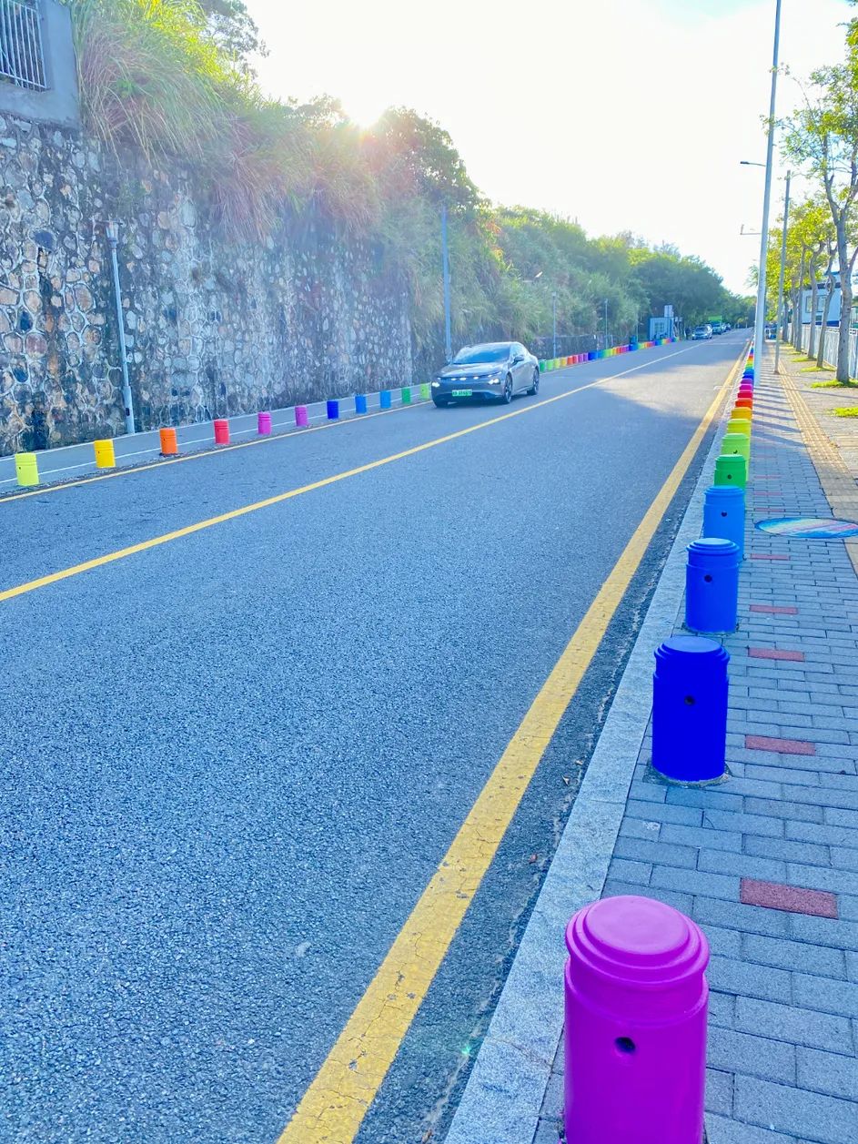据悉,这条“彩虹路”毗邻长沙头停车场,全长约1公里,共有近700个隔离墩。“这又是一个网红打卡点。”刚一下车,石小姐就迫不及待拿出手机拍起了照片。
