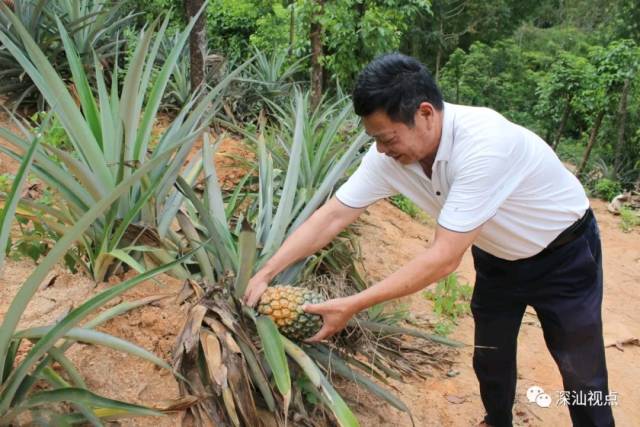 事实上,西南村“糖心”菠萝的“出圈”,离不开鹅埠镇委老书记叶石权的大力推动。早年,细心的他发现海边光照强,且深汕大道以南的西南村比公路以北的地区平均气温高了两三摄氏度,非常适合种植热带水果,经过考察后,选定了印尼传来的学名为“无刺卡因”的菠萝品种,并带领村民们开荒种植。
