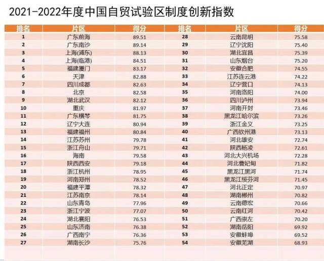“2021-2022年度中国自由贸易试验区制度创新指数”(下称“指数”)评估日前出炉,深圳前海位居第一持续领跑,与广州南沙、上海(浦东)、上海(临港)均处在第一方阵。