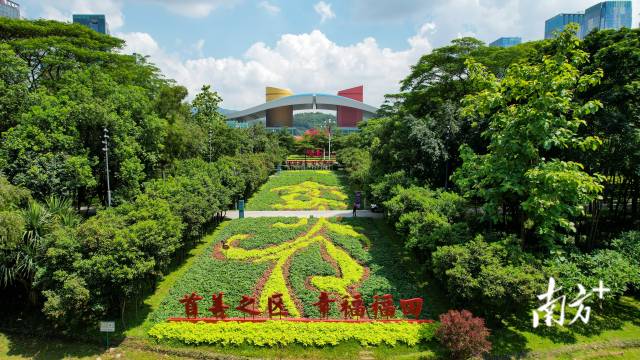 据介绍,2022年春天,福田区城市管理和综合执法局联合福田区“公园之友”公益组织,携手市民群众在市民农田种下色彩不同、品种各异的番薯苗,并以竹插片分隔、造型,希望以图寓意、以图传情,表达同心协力战疫情的决心与信心。