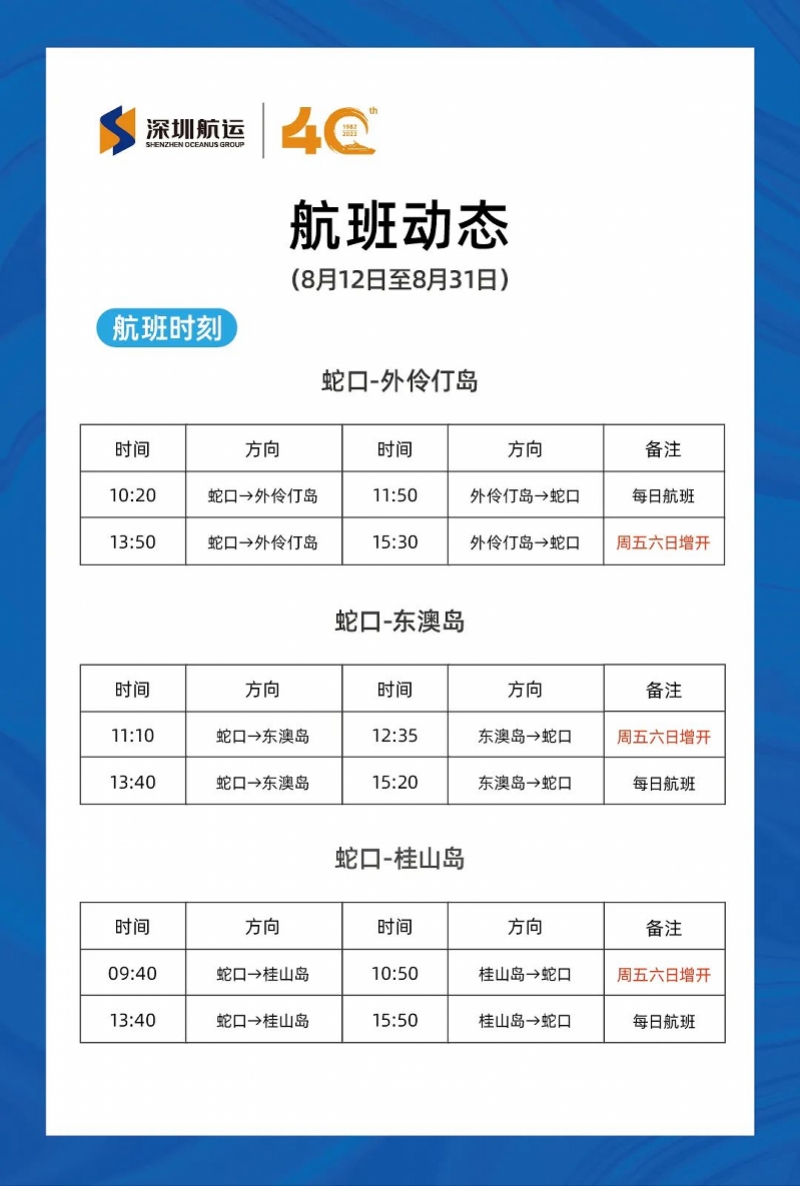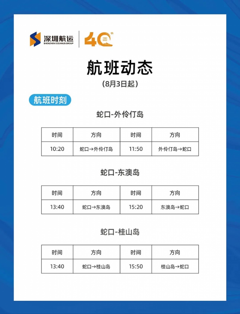 深圳航运集团将恢复深圳蛇口至珠海外伶仃岛、东澳岛
